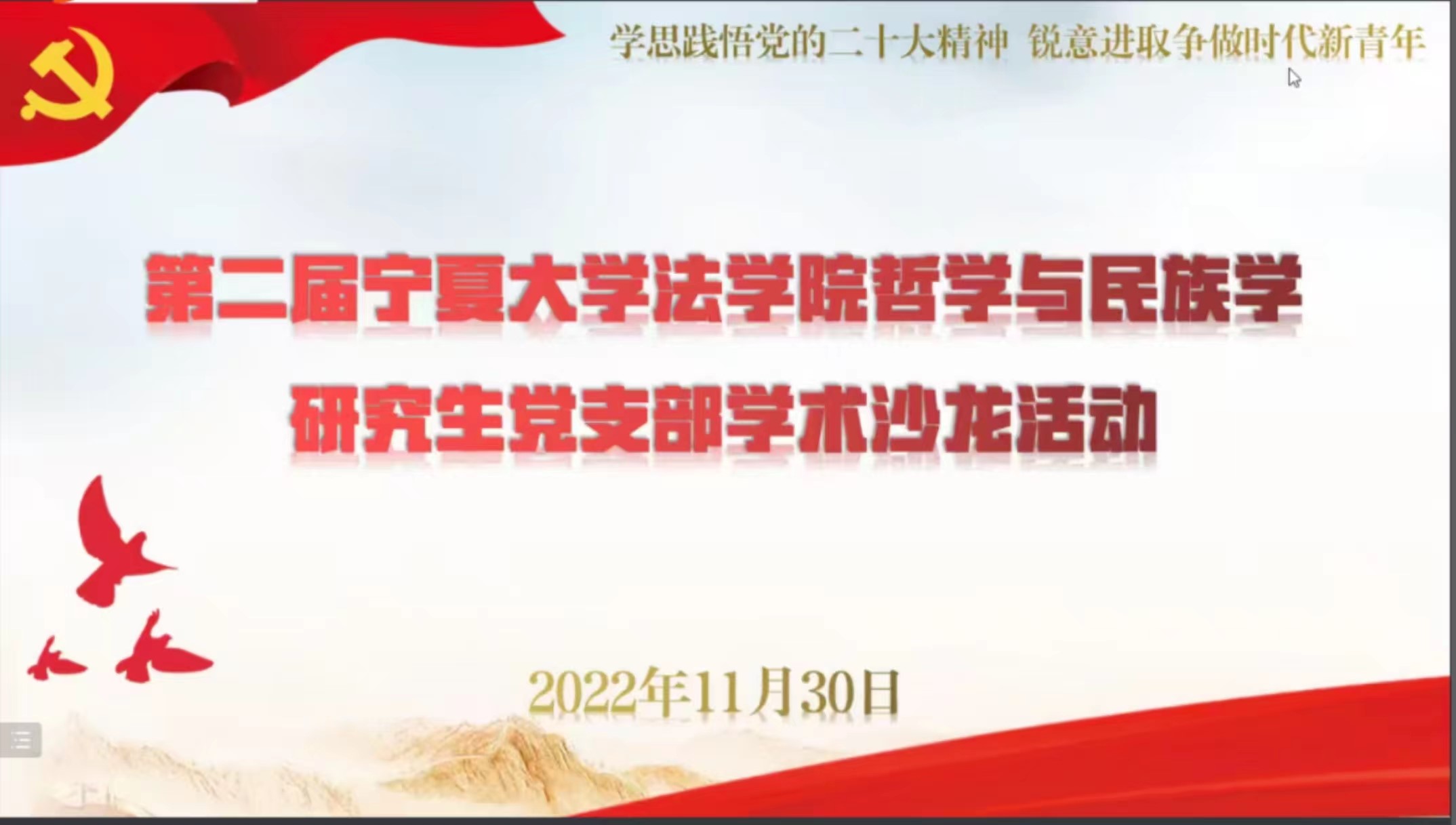 为促进学科交叉融合发展,激发研究生学术热情,切实提升研究生学术能力,11月30日19点,哲学与民族学研究生党支部举办线上《学思践悟党的二十大精神,锐意进取争做时代新青年》主题学术沙龙活动。院长、博士生导师吕耀军教授,副院长、硕士生导师刘振宇副教授,硕士生导师滕海滨副教授应邀担任本期学术沙龙的点评人。哲学与民族学专业50余名博士生、硕士生到会聆听。2021级黄瓜视频